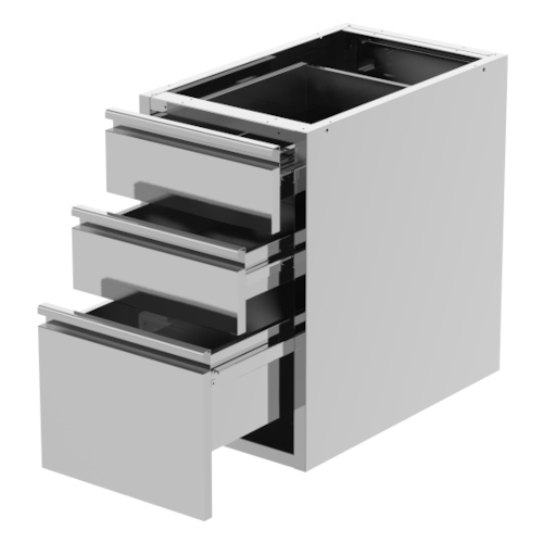 - Hergestellt aus Edelstahl AISI 304 Mit zwei Schubladen H. 100 mm und eine Schublade H. 200 mm