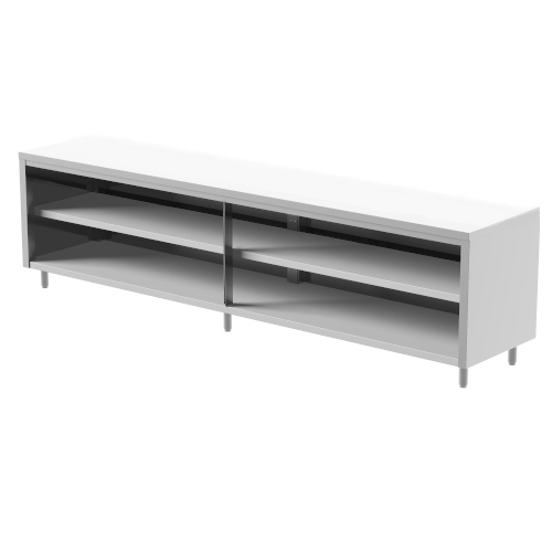 Sono realizzati su fianchi e dotati di piedini regolabili h. 14/18. Sono previsti modelli a giorno, con porte scorrevoli e passanti, con e senza alzatina. Per irrobustire ulteriormente la struttura, oltre a cm. 210 sono forniti di serie sei piedini. Le porte scorrevoli sono smontabili per agevolarne la pulizia, in pieno rispetto delle normative igieniche.