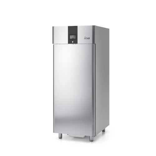 Struttura monoblocco in acciaio inox; finitura esterna satinata scotch-brite; spessore di isolamento 75 mm con schiuma poliuretanica ad alta densità (40 kg/mc); circolazione aria interna indiretta e uniforme; sistema di umidificazione e deumidificazione automatico controllato uniformemente; controllo elettronico mediante display LCD con funzionalità avanzate; piedini in acciaio inox regolabili H:120-150; porte auto chiudenti con fermo a 90°; fondo interno stampato con foro di lavaggio; sbrinamento automatico a gas caldo; evaporazione manuale dell’acqua di condensa; CFC e HCFC free; luce interna; serratura di serie.