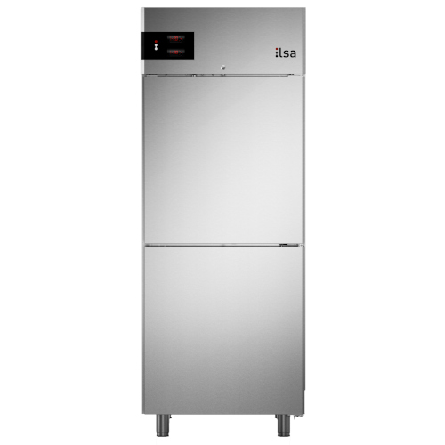 Struttura a monoscocca in acciaio inox AISI 304; finitura esterna satinata scotch-brite; spessore di isolamento pari a 85mm per la scocca e 65mm per la porta, con schiumatura ad alta densità (40kg/mc) senza HFC; piedini in acciaio inox regolabili h120/150mm; cella con angoli interni arrotondati per una perfetta pulizia ed igienicità; sbrinamento ed evaporazione dell’acqua di condensa a gas caldo; vassoi porta vaschette in acciaio inox; flusso d’aria laterale; porte auto-chiudenti a 100°; unità refrigerante a monoblocco brevettata e tropicalizzata (in classe climatica 5); serratura di serie; alimentazione a 230V/50Hz monofase standard.