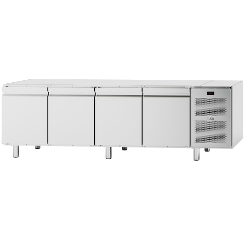 I nuovi tavoli refrigerati NEOS sono costruiti con una struttura a monoscocca in acciaio inox AISI 304. Finitura esterna satinata scotch-brite; spessore di isolamento di 60mm per la scocca e 50mm per le porte con schiumatura ad alta densità (40 kg/mc); schiena esterna in lamiera zincata, optional in acciaio inox AISI 304 scotch-brite; piedini in acciaio inox regolabili in altezza H 140/230mm; cella con angoli arrotondati per una migliore pulizia interna; porte auto-chiudenti con fermo a 95°; guarnizioni magnetiche porta e cassetti facilmente sostituibili; sbrinamento a gas caldo ed evaporazione automatica dell’acqua di condensa; maniglie ergonomiche; opzionale il vano tecnico a sinistra per entrambe le versioni; alimentazione standard 230V/50Hz; gas refrigerante R290; cerniere porte superiori ed inferiori fissate frontalmente sulla scocca (intercambiabili senza dover togliere il piano di lavoro); porte reversibili.