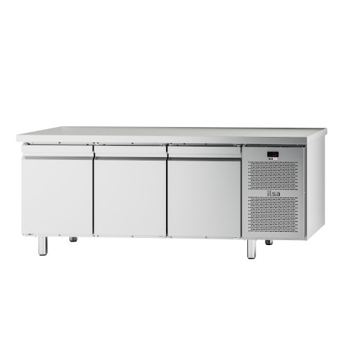 I nuovi tavoli refrigerati NEOS sono costruiti con una struttura a monoscocca in acciaio inox AISI 304. Finitura esterna satinata scotch-brite; spessore di isolamento di 60mm per la scocca e 50mm per le porte con schiumatura ad alta densità (40 kg/mc); schiena esterna in lamiera zincata, optional in acciaio inox AISI 304 scotch-brite; piedini in acciaio inox regolabili in altezza H 140/230mm; cella con angoli arrotondati per una migliore pulizia interna; porte auto-chiudenti con fermo a 95°; guarnizioni magnetiche porta e cassetti facilmente sostituibili; unità refrigerante a monoblocco; sistema di ventilazione canalizzata sulla schiena per una perfetta ed omogenea temperatura interna; sbrinamento a gas caldo ed evaporazione automatica dell’acqua di condensa; maniglie ergonomiche; opzionale il vano tecnico a sinistra per entrambe le versioni; alimentazione standard 230V/50Hz; gas refrigerante ecologico R290; cerniere porte superiori e inferiori fissate frontalmente sulla scocca (intercambiabili senza dover togliere il piano di lavoro); porte reversibili.