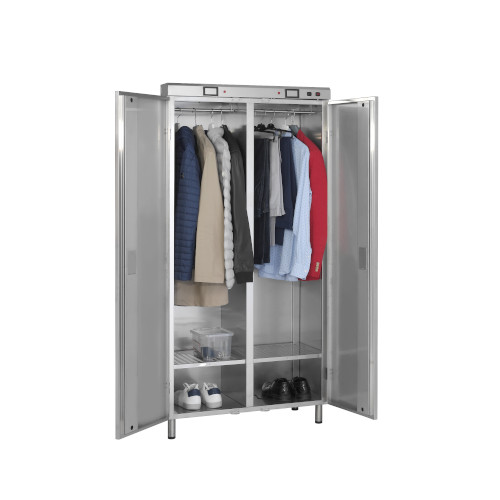 Una spia rossa, posta sul cruscotto, indica che il processo di sanificazione è in corso. Dopo circa 10 minuti, la fase di ozonizzazione dei vestiti è completata. Dopo 20 minuti circa il periodo di sanificazione è terminato e la spia rossa è spenta. Ora la porta può essere riaperta e gli indumenti, perfettamente sanificati, possono essere ritirati.