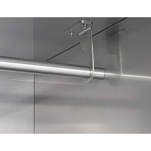 Alla chiusura della porta, dopo aver inserito ed appeso gli abiti da sanificare, schiacciare il pulsante nero per avviare il ciclo di sanificazione.